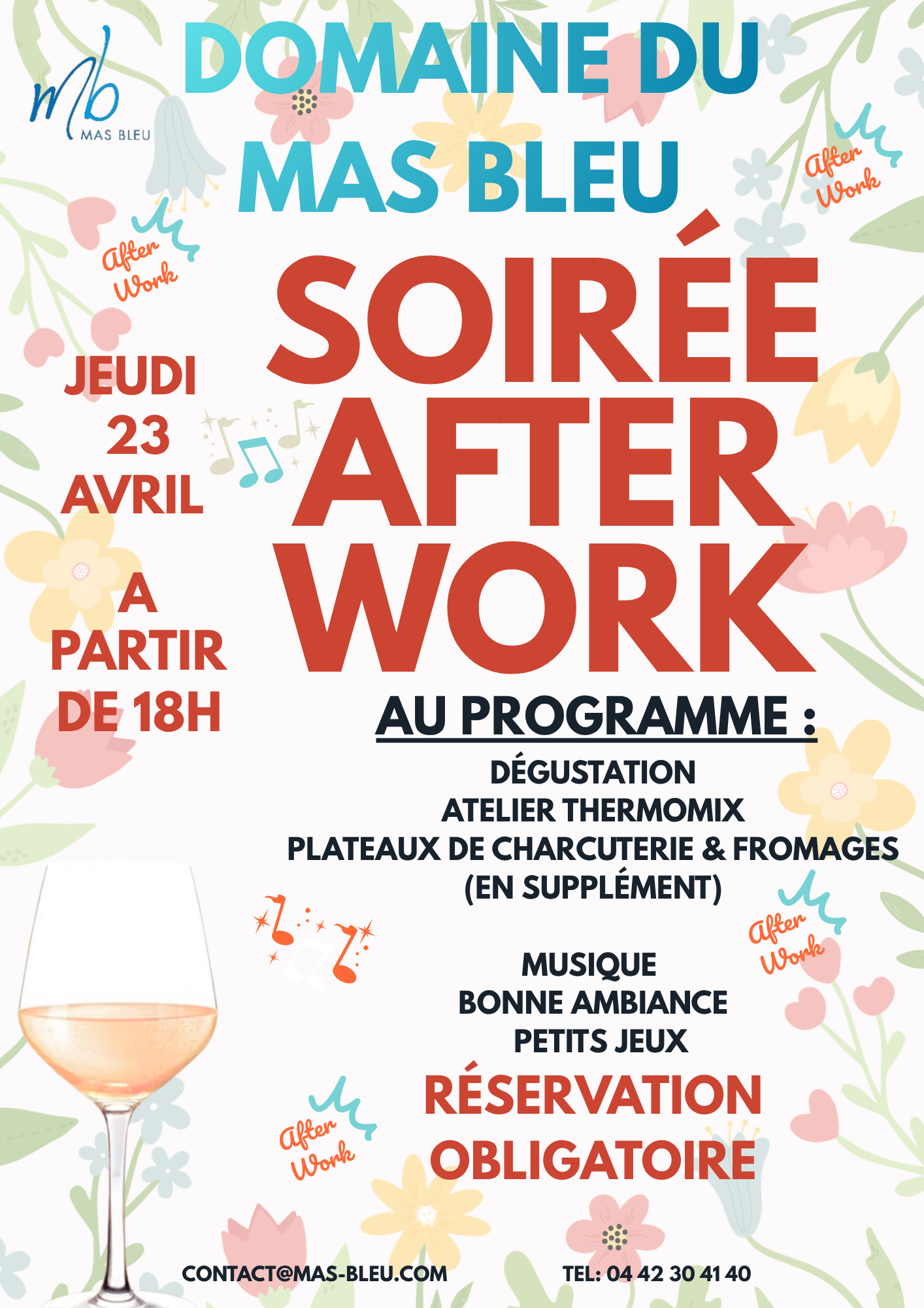 Le Domaine du Mas Bleu propose une soirée “After Work” le jeudi 23 avril à partir de 18h.