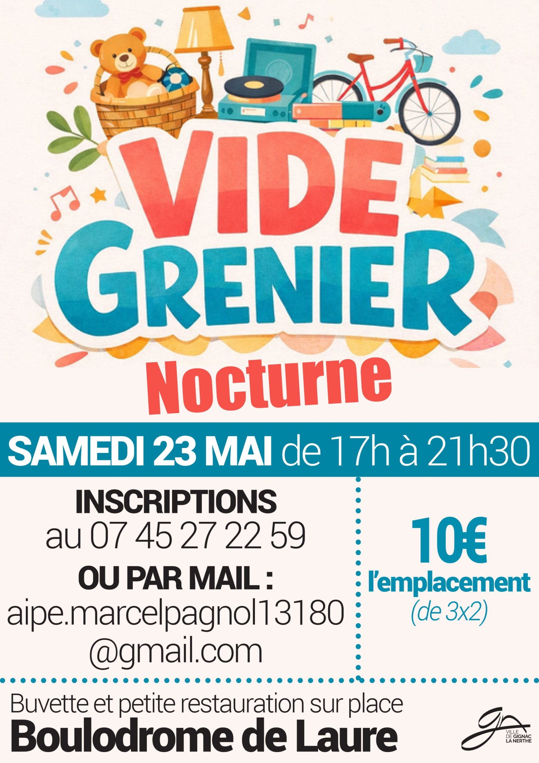 Un vide-grenier nocturne aura lieu le samedi 23 mai, de 17h à 21h30, au Boulodrome de Laure.