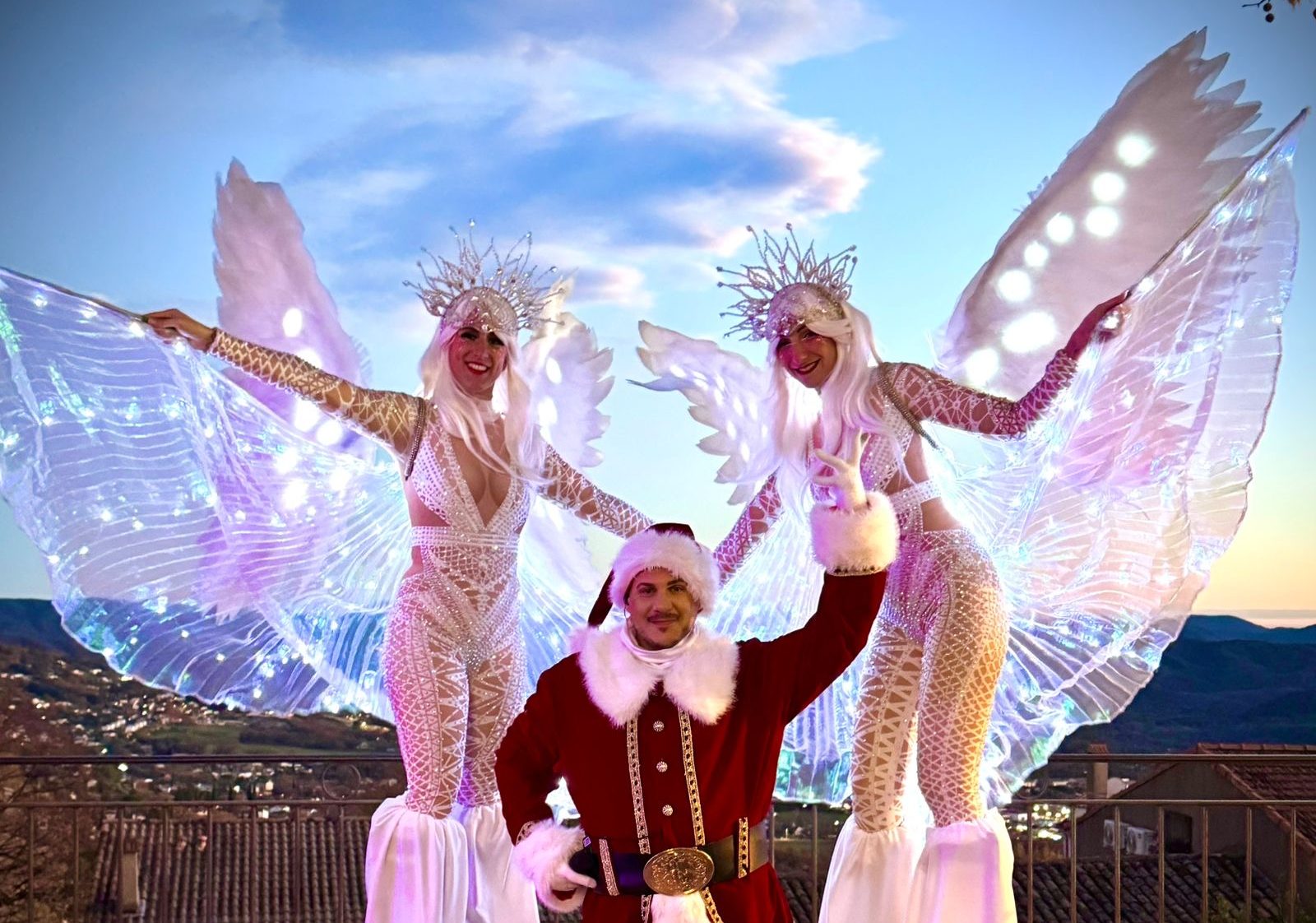 Maquillage, sculpture de ballons, chants de Noël avec trois chanteuses déambulant autour d’un vélo triporteur, mascottes (Mickey, Minnie, Stitch, Chase des Pat patrouille, Labubu et lutin de Noël), échassiers et bien sûr… le Père Noël !